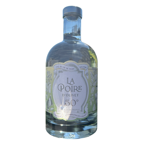 Olivet Pear Eau de Vie 70cl50°. Degree: 50%. Appellation: Williams Pear Eau de Vie from Orléannais. A true story of taste for this award-winning eau-de-vie made from William de Orléanais pear. Fruit of a mastered traditional distillation, it is undoubtedly the historical product of Olivet even when the bottle is devoid of its famous trapped fruit.